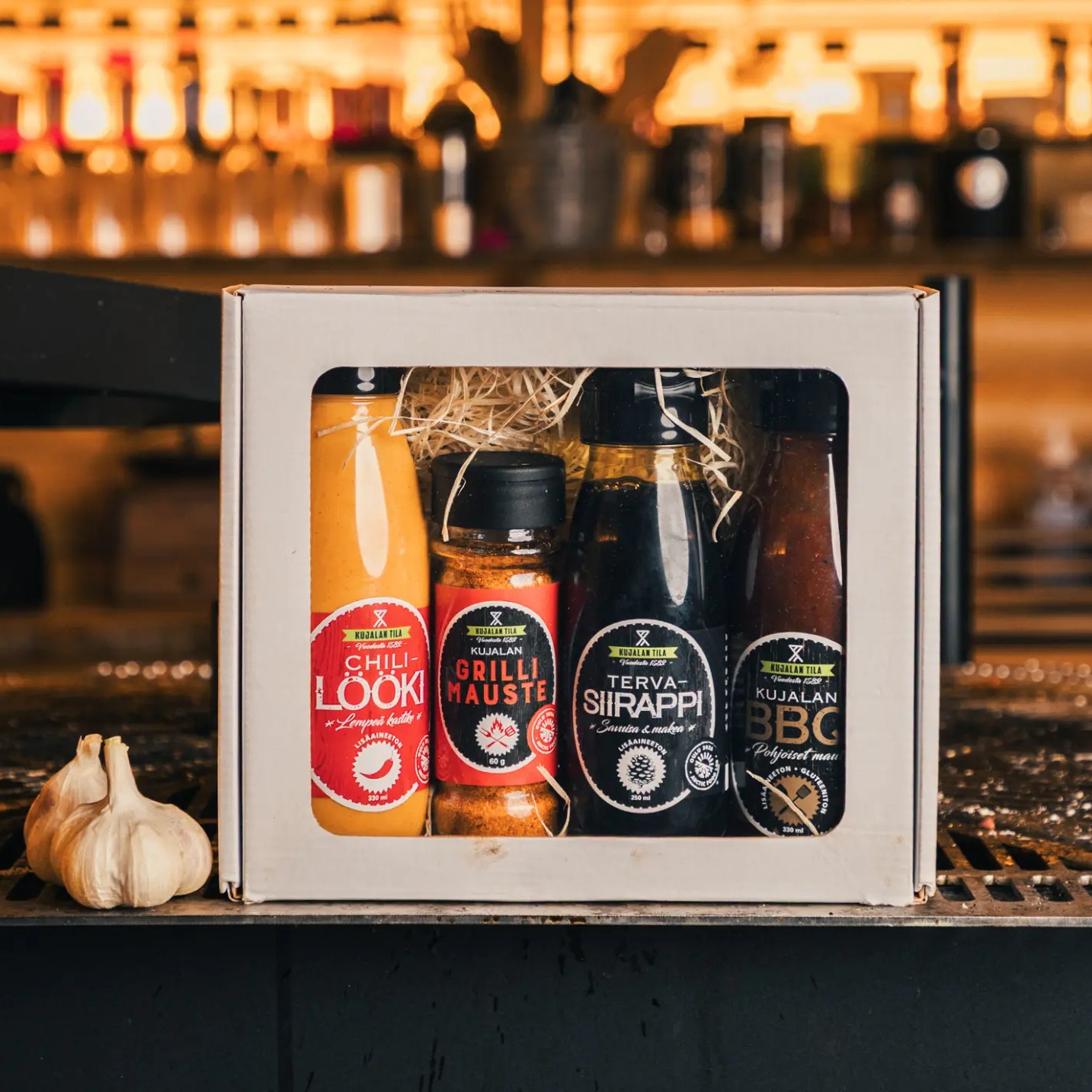 Lempeän miedosta grillausboxista löydät Kujalan rakastetut löökikastikkeen, jossa valkosipulin pehmeä voima ja luonnollinen raikkaus pääsevät oikeuksiinsa.
