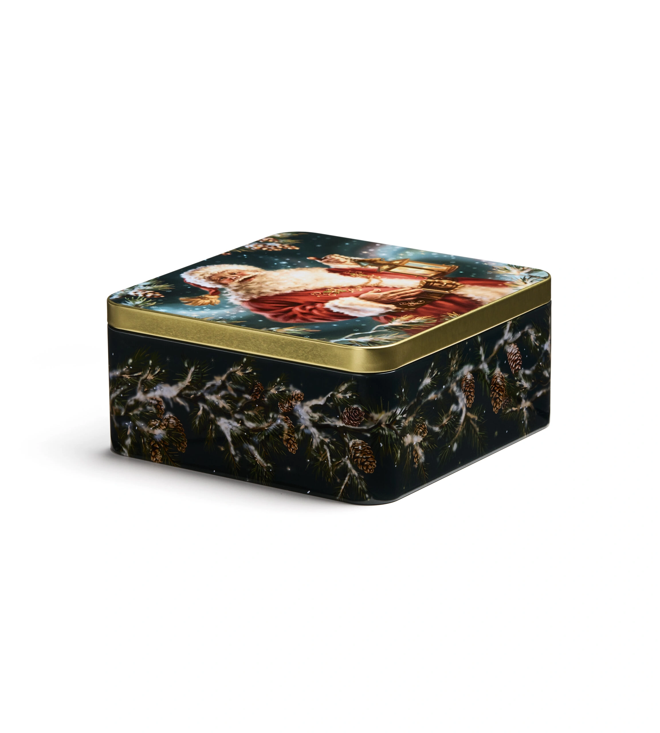 Joulupukki peltirasia, 1 kg. Sisällöksi voi valita: