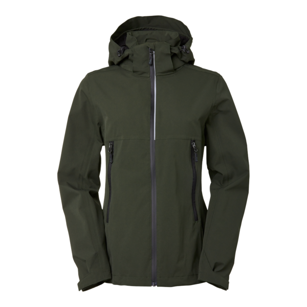 Tuulta- ja vettähylkivä kuoritakki, jossa on teipatut saumat ja vedenpitävä vetoketju, jossa on heijastava yksityiskohta. Pehmeä materiali, jossa on mekaaninen jousto. Irrotettava huppu ja säädettävät hihansuut. Kaksi sivutaskua ja yksi vetoketjullinen sisätasku.