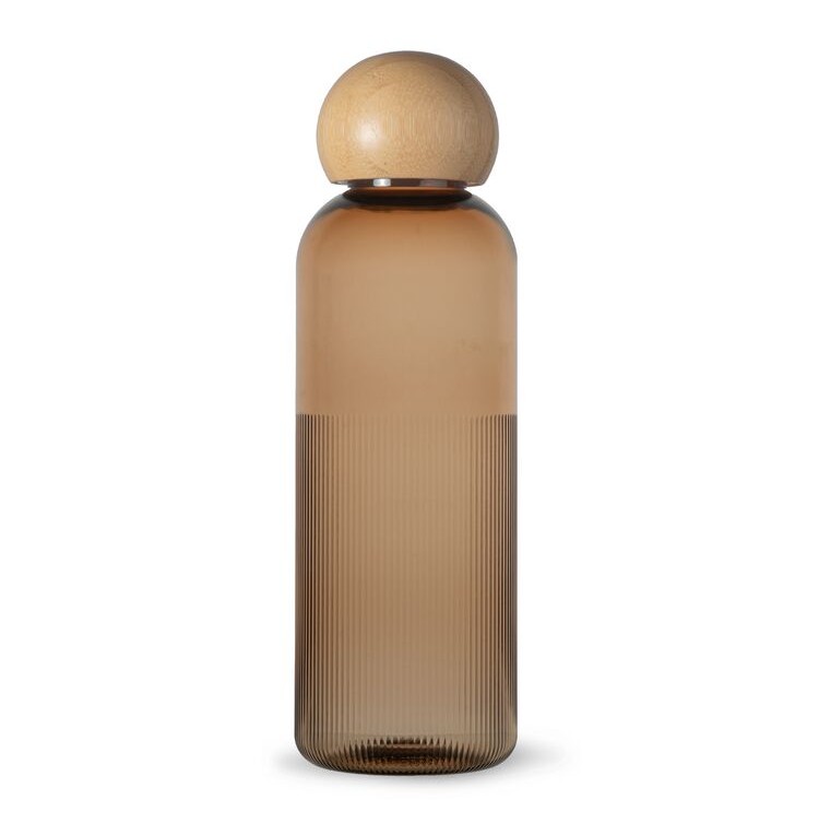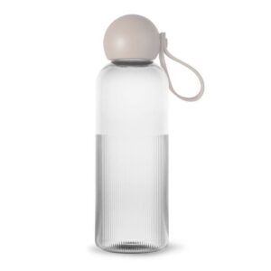 Pyöreä korkin muotoilu ja hienovaraiset raidat pullon rungossa luovat modernin pullon. Käytännöllinen TPR-lenkki (termoplastinen kumi) helpottaa kuljettamista ja voidaan irrottaa tarvittaessa. Pullo on saatavana useissa luonnollisissa väreissä. Käsinpesu.