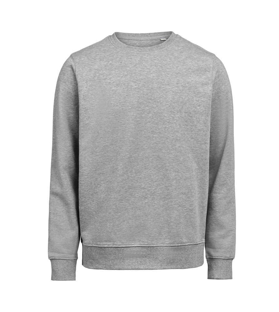 Valmistettu 80 % luomupuuvillan ja 20 % kierrätetyn polyesterin sekoituksesta. 2×1-resorit kauluksessa, hihansuissa ja helmassa. Collegepaita on entsyymipesty, joten se tuntuu pehmeältä.
