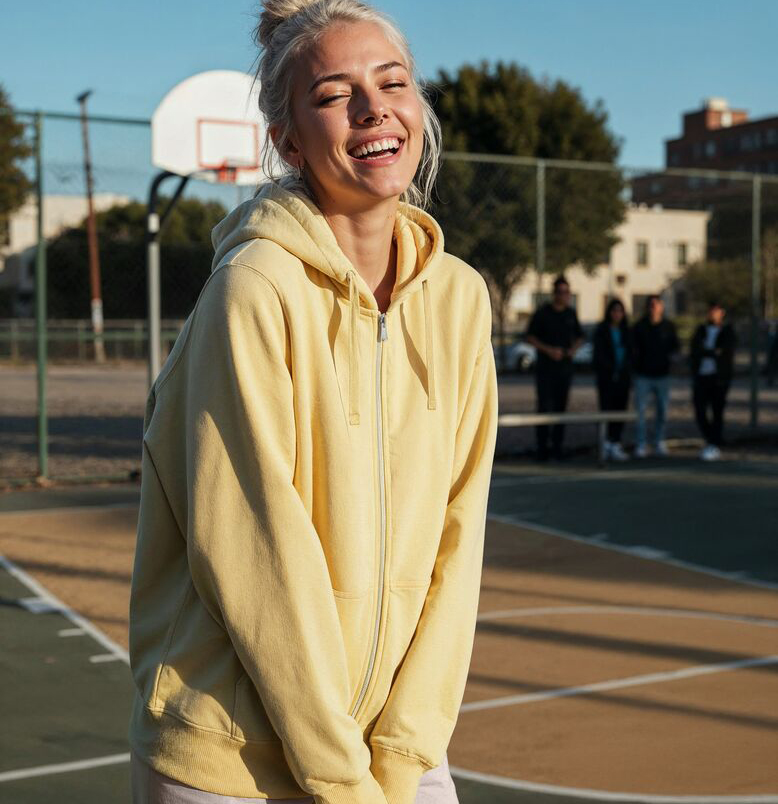 Pehmeä ja mukava unisex-mallinen huppari, jossa täyspitkä vetoketju edessä.
